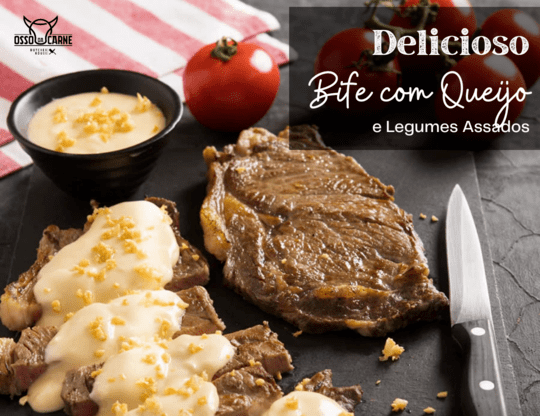 Bife com Queijo e Legumes Assados